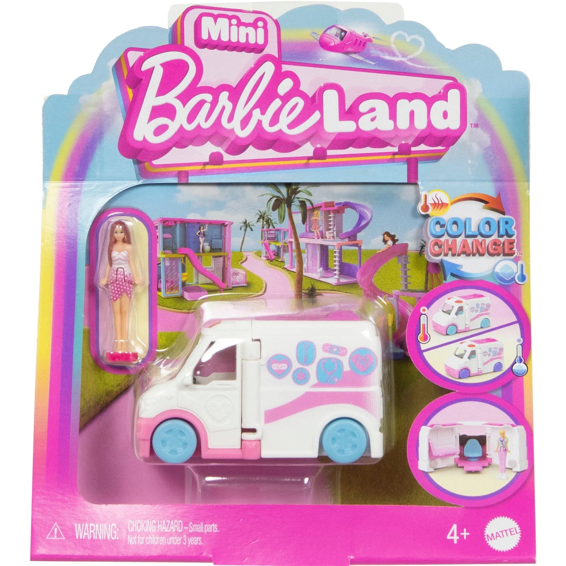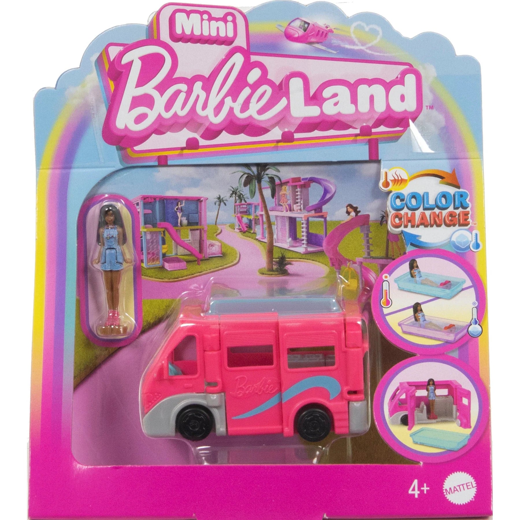Enter the world of Barbie doll with Mini BarbieLand -- a place to imagine big and Dream in Mini! Stylish rides made with surprise, these mini vehicle sets are ready for play or display. The small-scale recreations of iconic Barbie transportation, like the DreamCamper, have fun features and a color-change transformation unique to the vehicle! Each set comes with an adorably styled 1.5-inch Barbie doll that bends at the waist so she can sit and drive toward big adventures in Mini BarbieLand. Fans ages 4 years and older will want to collect all these cute wheels to build their own mini world!